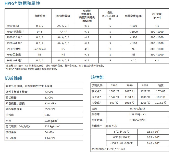 HPFS熔融石英级7980、康宁7980、康宁7980熔融石英、康宁7980熔融石英ArF级、HPFS康宁7980熔融石英、康宁7980半导体光学材料,Corning 7980熔融石英,等