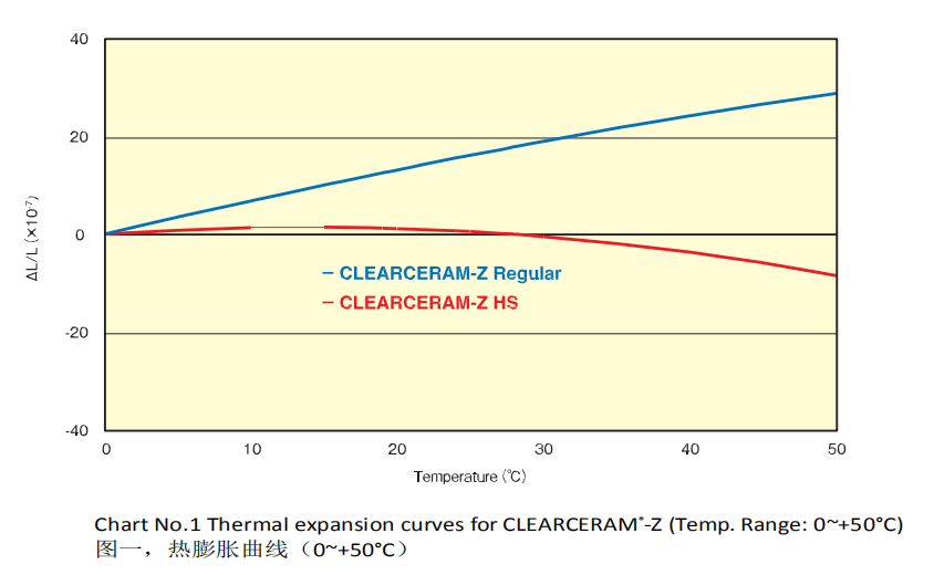 Clearceram-Z玻璃在较宽的温度范围内几乎没有热膨胀,并具有优异的抗热震性。CCZ常规提供较低的热膨胀在广泛的温度范围,而CCZ-HS提供较低的热膨胀接近室温。